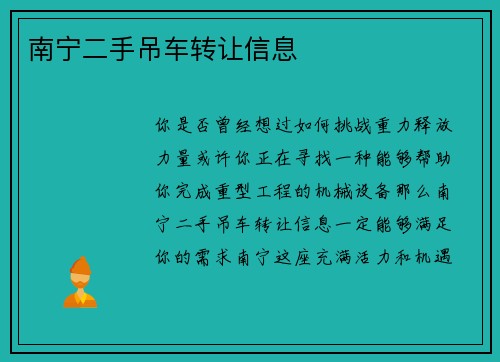 关于吊车的网名女生(吊车行天下:挑起重任,承载未来)
